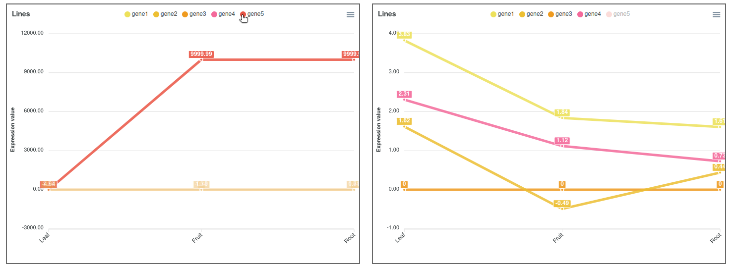 Figure 3. Expression comparator lines plot highlighting and hiding gene5.